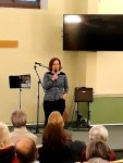 With the church and even its upper balcony packed to capacity the evening started with some wonderful music from the Song Club Choir accompanied by their house musicians, the BLT guitarists. A very entertaining piece of Stand Up comedy followed from Fran Zuch who gave a different look at some everyday problems after her upbringing in East Germany before the wall came down. Next we had the wonderful playing of the acoustic guitar duo, the 2Gs (Catherine and Mike) who proved that they had great voices for harmony.